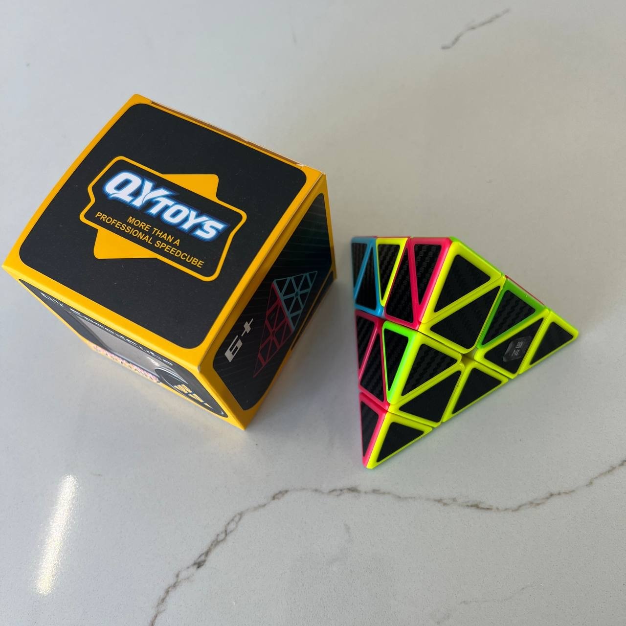 • هرم روبيك (Pyramid): لغز هندسي مثلثي يعتمد على سرعة الدوران والتفكير المكاني.