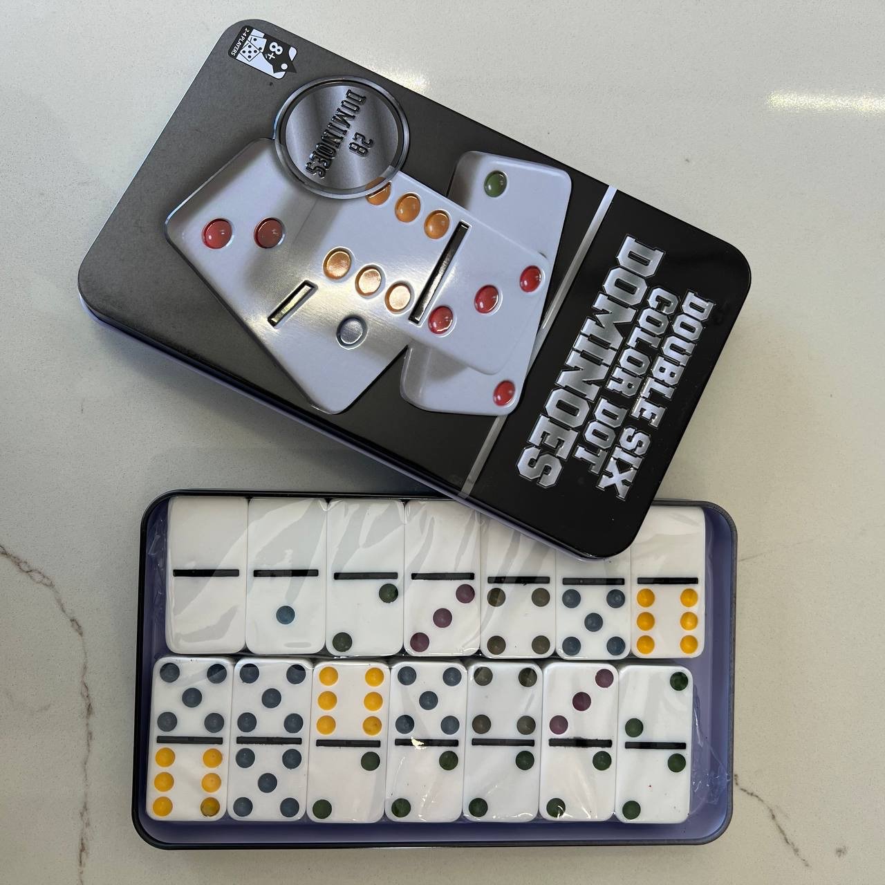 • محتويات العلبة: طقم كامل مكون من 28 قطعة (Double-Six).